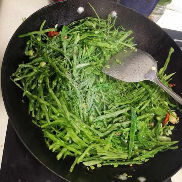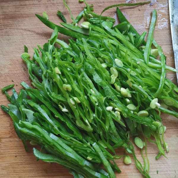 用刀切成細絲,也可以撿嫩的,小個的囫圇個炒。
