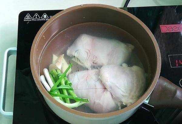 3.鍋裡放水,料酒,薑片,香蔥,煮8分鐘左右,撈出,煮太久會老