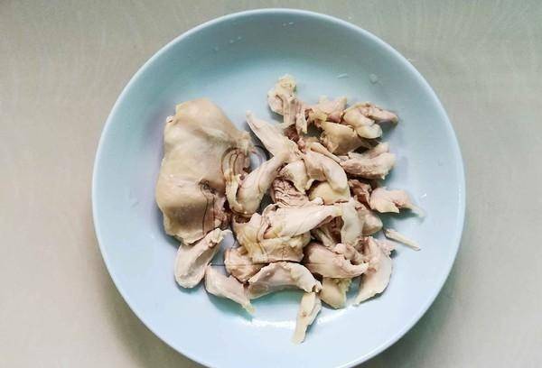 7.將煮熟的雞肉撕成小塊