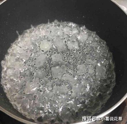 2、將冰糖和水放入幹凈的鍋中,用小火慢燉。煮沸後,我們要不斷攪拌,直到冰糖融化成糖漿。
