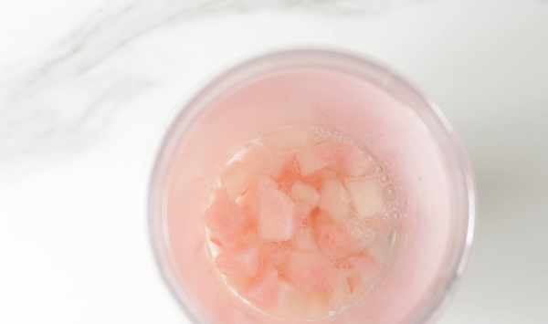 4、清水B加入水蜜桃塊,放入料理機中