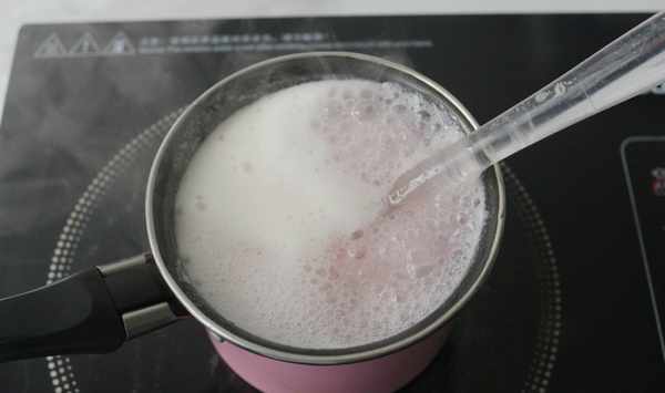 9、入到爐上,開中火煮開,邊煮邊攪拌至到完全煮沸