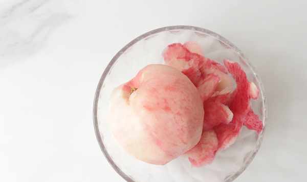 2、水蜜桃洗凈後把表面的毛毛刷幹凈,然後去皮,皮要留著用