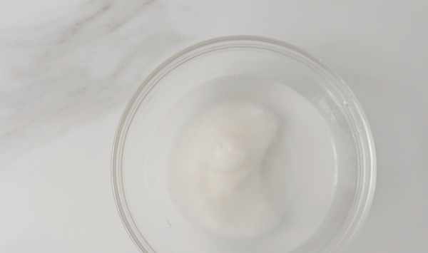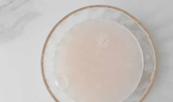 7、在清水A中取少量的水加入15克白涼粉中,再用勺子攪開