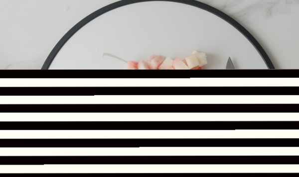 3、再把去皮的水蜜桃切小塊去核