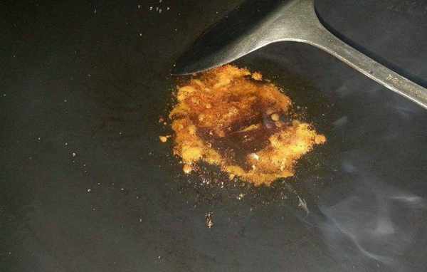 很多人做錯瞭這一步,往裡加冷水,會讓糖色爆開,把廚房弄得一團糟。加開水是正確的。加入開水後,繼續攪拌。當你註意到氣泡變小,糖色變成紅褐色時,就可以馬上關火瞭。用餘下的溫度多烤幾次。待糖色變粘稠後,就可以將食材放入鍋中炸制。