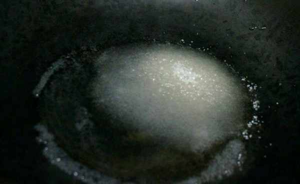 在這種情況下,油還是冷的,用勺子慢慢的翻動冰糖,這樣冰糖可以快速融化,大傢註意不要在油熱的時候下鍋,熱的油可能使炒糖稍微變色,焦味和苦味也會導致食用油飛濺出來傷到自己。
