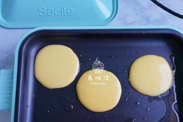 5.鍋中松餅煎制一會就出現密集的泡泡,就可翻面繼續煎制,全程要小火不然易煎焦