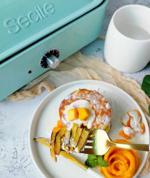 這樣松餅很美味,孩子早上能吃一盤,我給旁邊還搭配瞭點水果,營養更加均衡瞭,也可配一杯牛奶或者豆漿,保證吃的飽飽,活力十足。這樣的早點也非常適合我們大人食用,我們可搭配一杯咖啡就是美好的下午茶瞭呢!