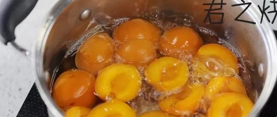 3、煮杏醬的時候,要用不銹鋼或者不粘平底鍋。不要用鐵鍋,不然煮的過程中杏中的酸與鐵鍋發生反應容易使杏醬變色。