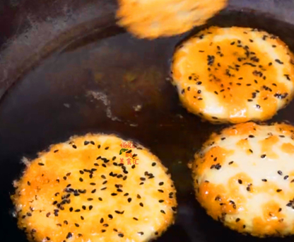 炸到玉米面餅的顏色微微發黃,就可以控油出鍋瞭。