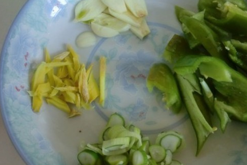 用料:青椒、雞蛋、鹽,生抽、豆油、大蒜、蔥。