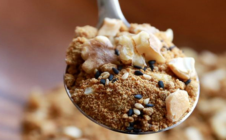 省事一點的辦法就是放烤箱烤幹,炒幹後將堅果碎倒進去,翻炒均勻即可關火,全程都要小心,千萬不要糊鍋。盛出後冷卻,將葡萄幹、枸杞和紅糖等加進去,攪拌均勻。