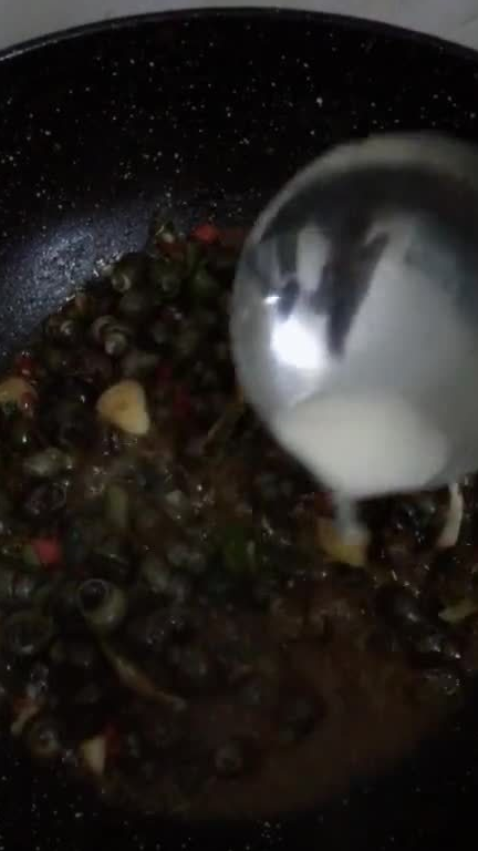 然後加入適量的清水,田螺這東西畢竟是在野外或者池塘上捕撈上來的,或多或少都會帶點病菌和寄生蟲之類的東西,燜熟瞭吃起來才會放心。