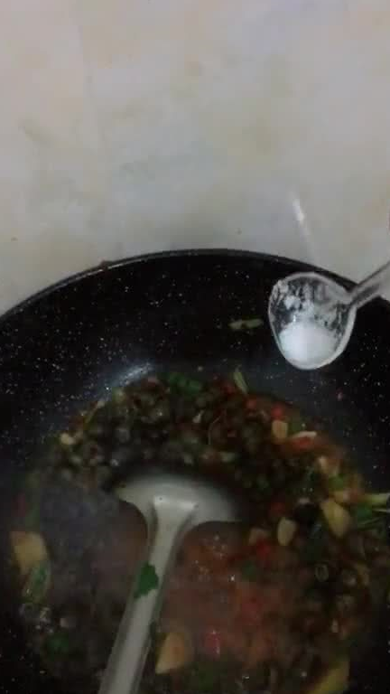 湯汁再次煮開後,就可以開始調口瞭,放入少許的鹽、味精,嘗一口試試是否咸淡適中,個人覺得燒田螺味道重些,吃起來比較適口,大傢覺的呢?