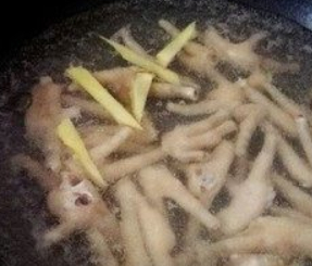 鍋燒開水,放幾片薑,把雞爪放入煮幾分鐘。幹薑溫中散寒,健胃活血,枸杞子滋補肝腎,益精明目,配合食用可以治療由於腎陽虛引起的陽痿、畏寒肢冷、腰疼、腰膝酸軟、倦怠等。