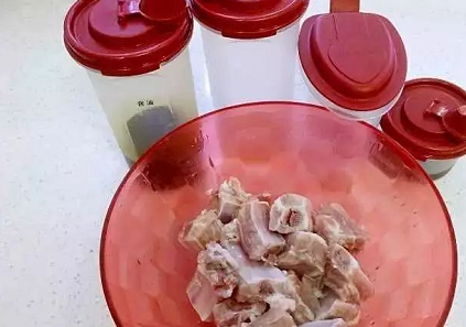 1、首先把仔排提前放冷藏室解凍,洗凈、瀝幹備用,糖醋生抽料酒準備好即可;