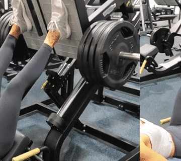 腿舉,也就是臀部處於低位,利用雙腿的力量將倒蹬機的踏板向上推起。這個動作可以說是簡單版的深蹲,其能够給訓練者的背部提供支撐,以讓注意力盡可能的集中到目標肌群上。