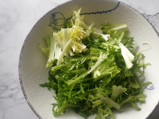 8.再將苦菊段放入,翻拌均勻,盛出裝盤即可