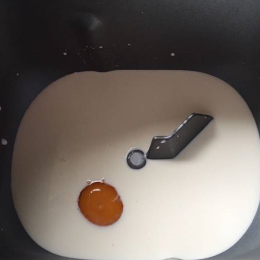 第1步、牛奶,雞蛋,糖,鹽加入面包機桶內