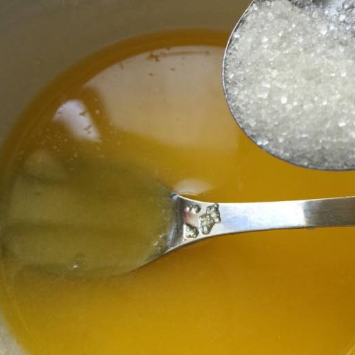 第5步、首次發酵面團期間制作椰蓉餡。將材料中的黃油隔水融化成液態,加入糖攪拌均勻