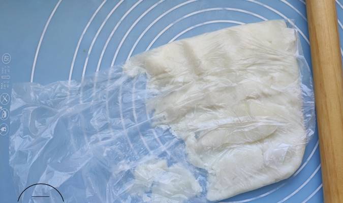 6、再搟成這樣的橢圓形狀,註意用力均勻,薄厚一致。