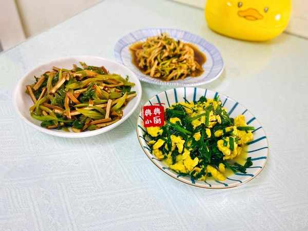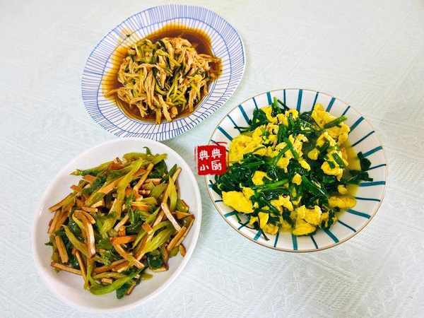 天氣熱瞭,來個簡單的涼拌雞絲吧,再炒兩個素菜,中午都光盤瞭