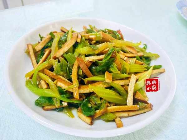 西芹炒香幹。現在我算是分清楚各種不一樣的芹菜瞭,這種是西芹一般挺粗壯的,我吃的時候會切成細絲,外面的筋也要簡單撕一下。放一點香幹,一些辣椒,搭配炒非常好吃,挺下飯的,怕辣就不放辣椒瞭。