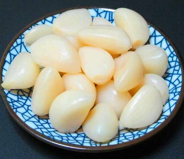 5、浸泡過之後的大蒜,我們將其撈出來,放到相對透氣的地方,將水分徹底散幹。