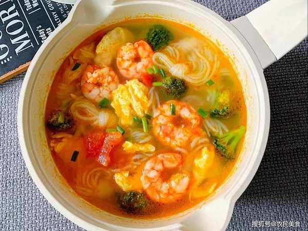 2、鍋中倒少許油,放入番茄翻炒出汁水,倒入適量清水,煮開,放入西蘭花和醃制好的蝦仁,再放入魔芋結,煮開後加入雞蛋,一起翻拌均勻即可。