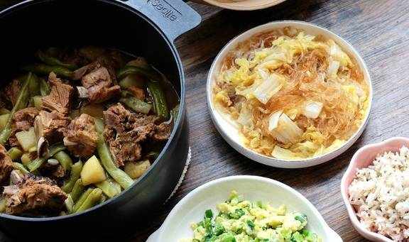一般午餐我都會做三到四個菜左右,根據傢裡的人數而定,大多也都是葷素搭配,我傢大女兒多多隨爸爸,不怎麼愛吃肉,但小女兒蘑菇妹隨我,喜歡吃肉,所以燉個排骨還是有必要的,裡面再搭配上我們都愛吃的豆角和土豆,這一鍋燉菜好吃又下飯,不用放油也能咸香美味色澤誘人。