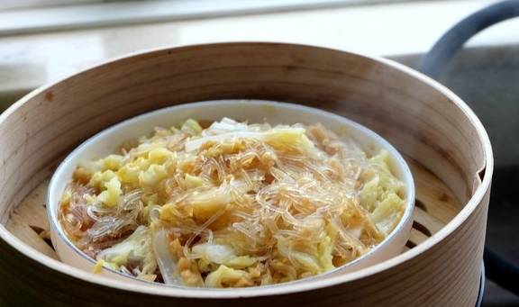 調拌好的蒜蓉粉絲娃娃菜鮮嫩,因為放的大蒜比較多,蒜味很重,但我很喜歡,冒著熱氣兒端上桌上,聞著這味兒都覺得滿足極瞭。