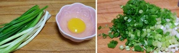 1、鵝蛋敲到碗裡備用,香蔥洗凈瀝去水份,切碎備用;