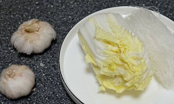 1、準備好制作蒜蓉粉絲娃娃菜的原料,粉絲用的是綠豆粉絲;