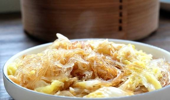 【原料】:娃娃菜一顆、細粉絲一把、大蒜適量、食用油、蒸魚豉油適量;