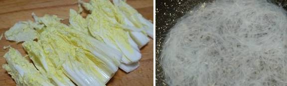 2、先把娃娃菜洗凈後切成小段,粉絲用溫水泡軟備用;