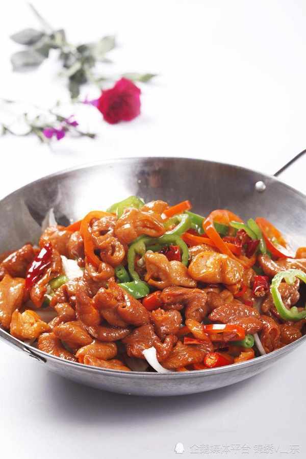 材料:大腸,青椒,鹽,薑,青椒,幹辣椒,