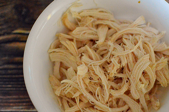 5.煮好的雞胸肉靜置冷卻,用手撕成小條,方便食用。