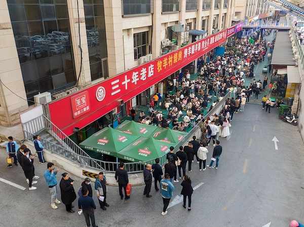 截至3月16日,淄博新增瞭170多傢燒烤相關企業,而僅3月14日就新增瞭20多傢。盡管如此,從網民的分享來看,淄博的燒烤店仍然供不應求:很多人在開門前就開始排隊,熱門的網紅店每天能接待500多桌食客,很多店裡的菜很快就賣光瞭,被迫讓排隊的人“打退堂鼓”。