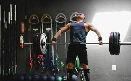 2.當杠鈴被翻至高位時,重心也隨之上移,囙此,此時訓練者需要保持絕對的平衡,否則,當杠鈴舉過頭頂時很容易後仰,所以,訓練者的雙腿要用力蹬地,雙腳分開與肩同寬,膝蓋微微彎曲以抵消衝擊力,臀部肌群收緊穩定骨盆,腰腹肌群收緊穩定脊柱。