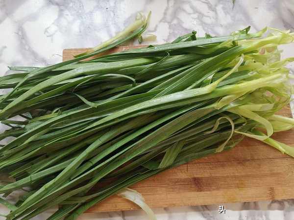 第一步:蒜葉采摘回傢,清洗幹凈備用,蒜苗是大蒜的幼苗,蒜苗中含有的一些獨特物質可以消炎殺菌,是“地裡長出的抗菌素”經常吃點不但可以抗菌殺菌還可以預防感冒,而且潤腸通便葉非常好,能大大增強自己的抵抗力。在這個季節,遇到蒜葉也別扔瞭,帶回傢給著我做超級好吃。