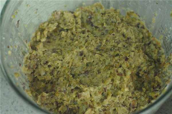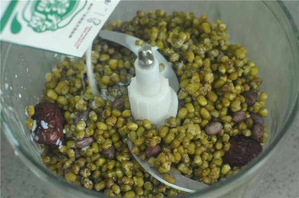 因為是隔水蒸,蒸熟後的綠豆有點幹,倒入絞肉機中。