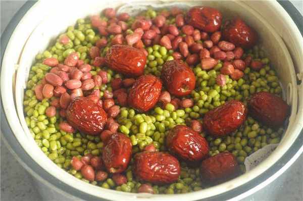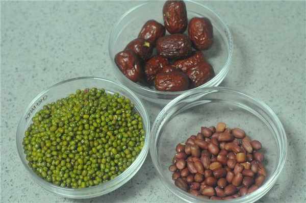 綠豆300克花生100克紅棗100克黃油50克牛奶200克冰糖適量