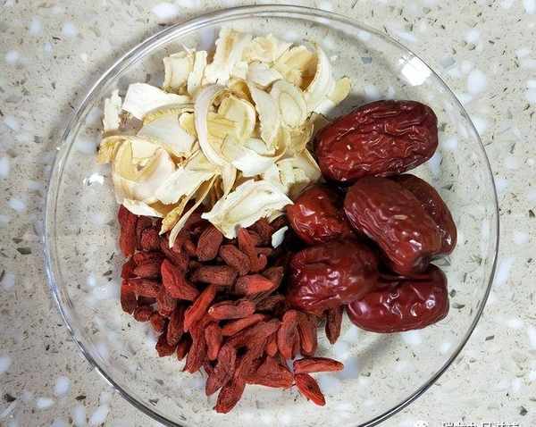 做法:西洋參、紅棗、枸杞適量,直接放在水杯裡,熱水沖泡即可。