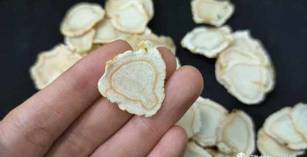 市面上的西洋參大多以切片形式售賣,我們在選購的時候,首先要看切片的顏色。品質好的西洋參片呈淡黃色,密度大,淀粉含量少,表面光滑,紋路清晰,而稍劣質的西洋參片,表面是比較粗糙的,會有一些粉粒。