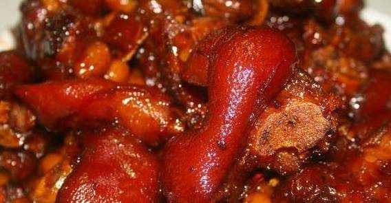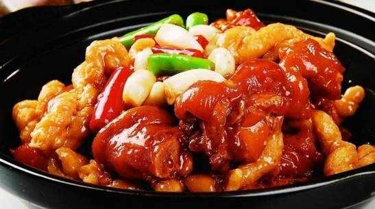 豬手、薑、蔥、八角、花椒、紹酒、冰糖、鹽、味精、紅辣椒、香葉、醬油、白胡椒、湖南剁椒、砂糖、香醋。