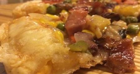 孩子喜歡吃西餐廳的披薩,但覺得外面做的披薩又貴還不幹凈。我以前念書的時候在必勝客做過兼職,試著在傢用電餅鐺或者烤箱都能成功。