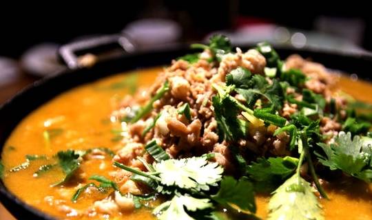 活鱖魚750克,帶皮熟羊肉500克,青菜心10棵,常用調料適量。