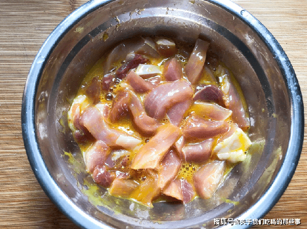 3、肉條不能直接油炸,要先加調料醃制,然後加淀粉上漿,這樣炸好後才是外酥裡嫩的。上漿時要加一個雞蛋、一勺淀粉、一勺油,這樣口感最好。