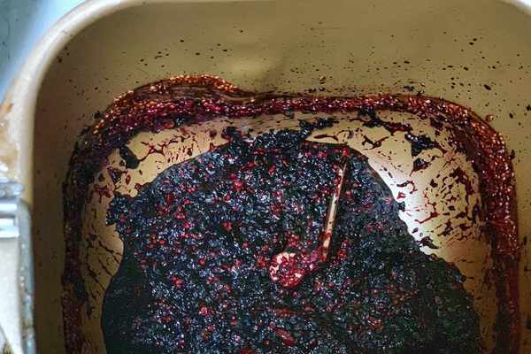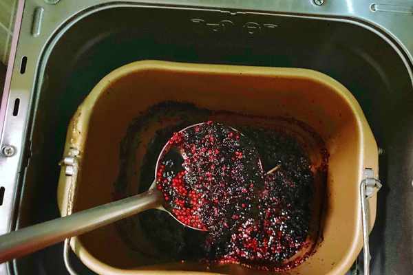 5,啟動面包機的果醬功能,開始炒制桑葚醬,1個程序結束後,桑葚醬的水分還比較多,繼續用果醬功能熬制。